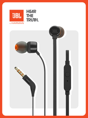 Наушники проводные, JBL T110, внутриканальные, вакуумные с микрофоном, черный
