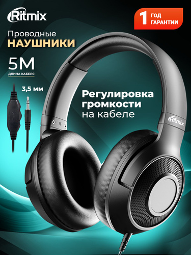 Наушники проводные большие RITMIX RH-544TV RC Black игровые, с регулировкой громкости