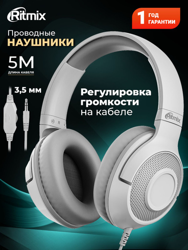 Наушники проводные Ritmix RH-501, легкие наушники 2 м кабель разъем 3,5 мм без микрофона