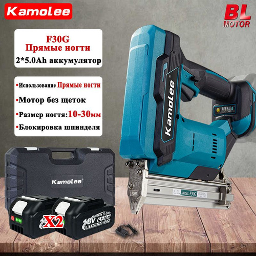 Kamolee портативный Гвоздезабивной пистолет F30 (10-30 мм)(2 АКБ 5.0 Ач,Ящик Для Инструментов)