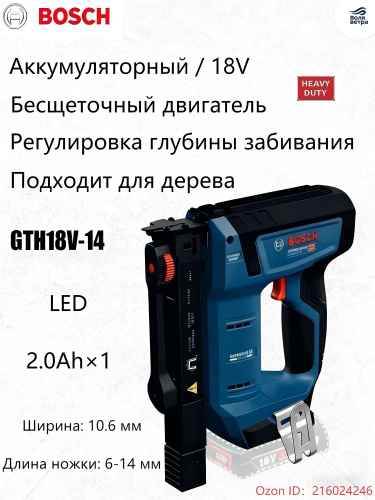 Bosch Аккумуляторный степлер GTH18V-14, бесщеточный, 18V, для U-образных скоб