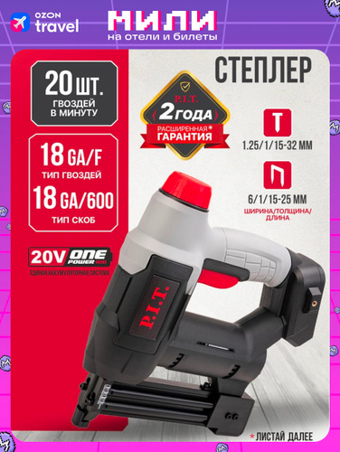 Степлер аккумуляторный P.I.T. PST20H-30/625A SOLO, 20В, 20шт/мин, магазин на 100шт, LED-подсветка на системе OnePower
