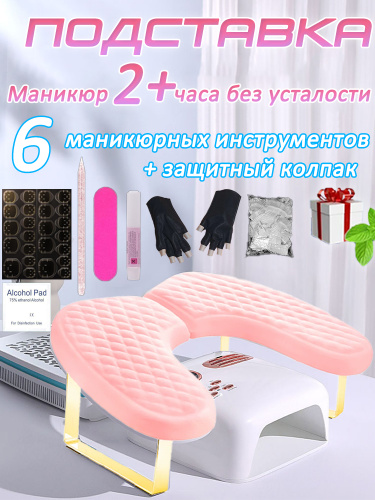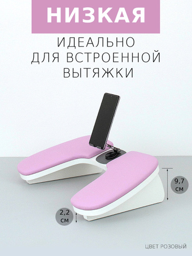 Подставка для рук маникюрная OLMI низкая с держателем телефона розовая/белая