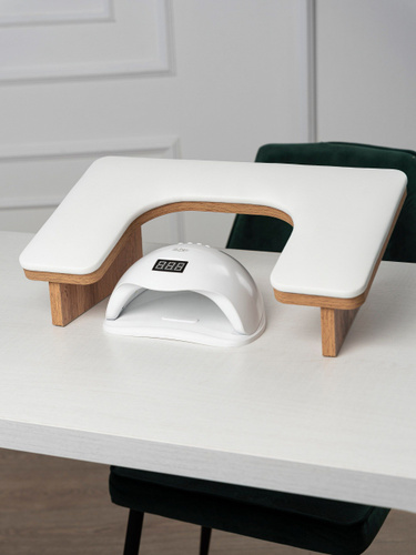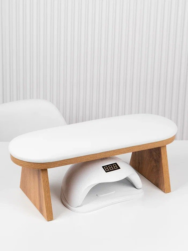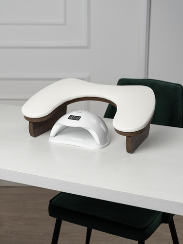 Маникюрная подставка для рук белая c орехом/подставка для маникюра Pro M nail