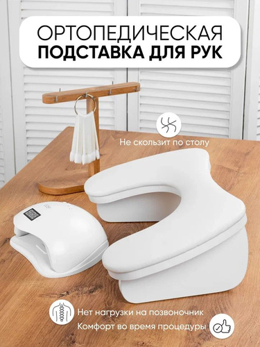 Подставка для рук маникюрная OLMI низкая с держателем телефона белая/белая