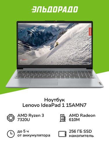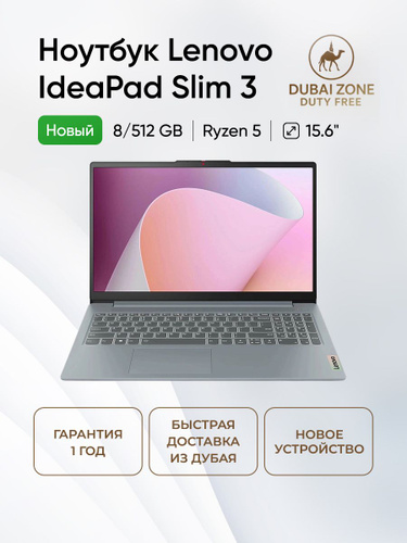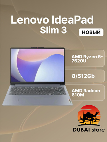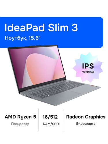 Lenovo IdeaPad Slim 3 15AMN8 Ноутбук 15.60", AMD Ryzen 5 7520U, RAM 8 ГБ, SSD 512 ГБ, AMD Radeon 610M, Windows Home, (82XQ00RSUS), серый, Русская раскладка