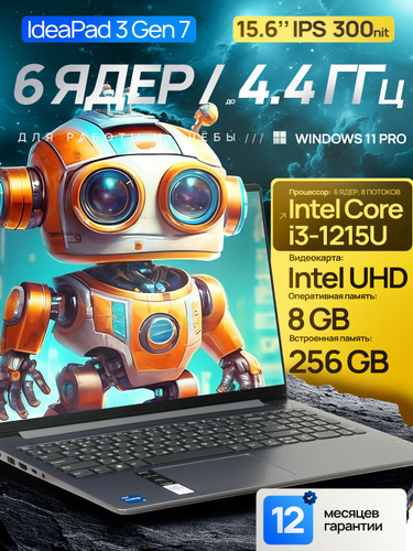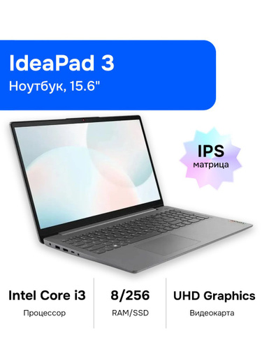 Lenovo IdeaPad 3 Gen 7, Office 2021 Pro Plus, Ноутбук 15.6", Intel Core i3-1215U, RAM 8 ГБ 256 ГБ, Intel UHD Graphics, Windows Pro, серый, Русская раскладка