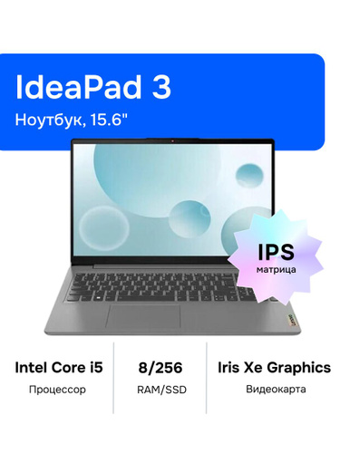Lenovo IdeaPad 3 15IAU7 Ноутбук 15.6", Intel Core i5-1235U, RAM 8 ГБ, SSD 256 ГБ, Intel UHD Graphics, Без системы, (82RK0170RK), серый, Русская раскладка. Уцененный товар