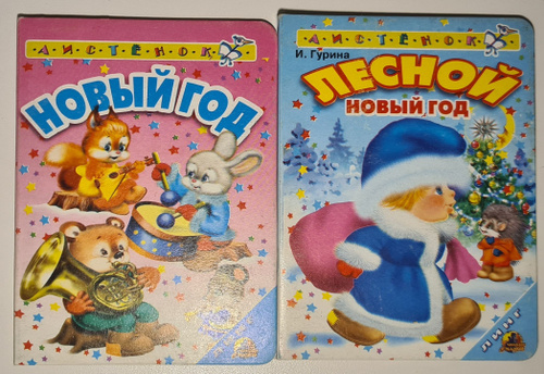 Новогодняя детская книжка картонная, две штуки, И. Гурина., И.Ерофеева., 2005 г.