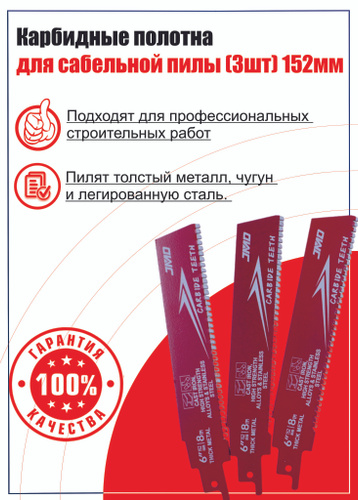Карбидные полотна для сабельной пилы (3шт) 152мм