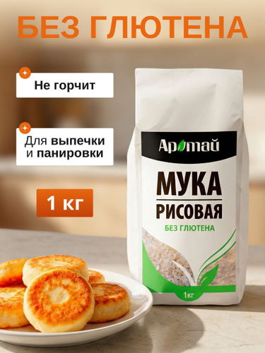 Мука рисовая 1 кг БЕЗ ГЛЮТЕНА цельнозерновая для выпечки и панировки
