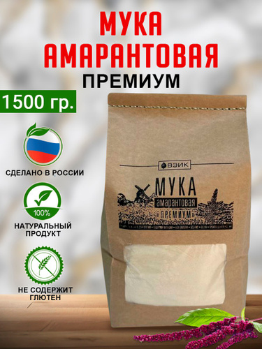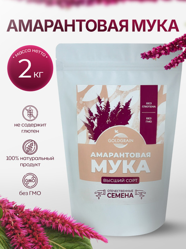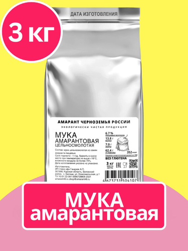 Мука амарантовая цельносмолотая 3 кг, жерновая. "Амарант Черноземья России". Без глютена, цельнозерновая, диетическая.