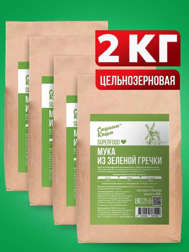 Мука из зеленой гречки цельнозерновая 2кг (4*0,5кг)
