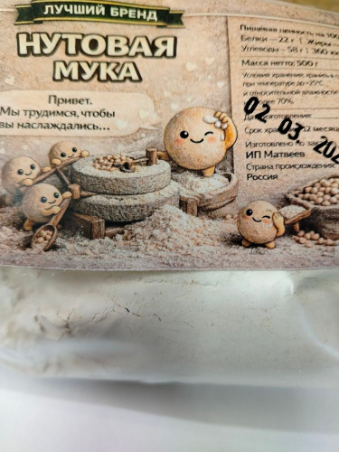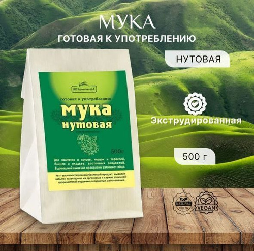 Мука нутовая 500 гр, Безглютеновая мука, Вегетарианский продукт, Vegan