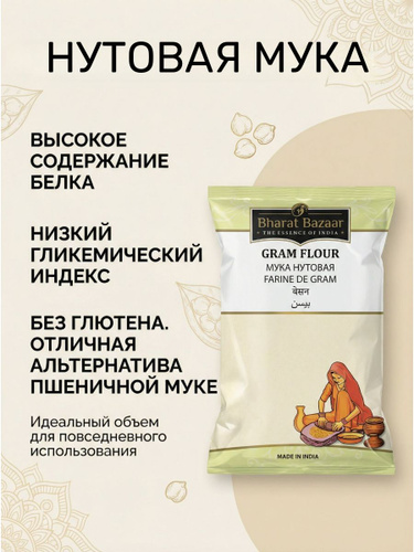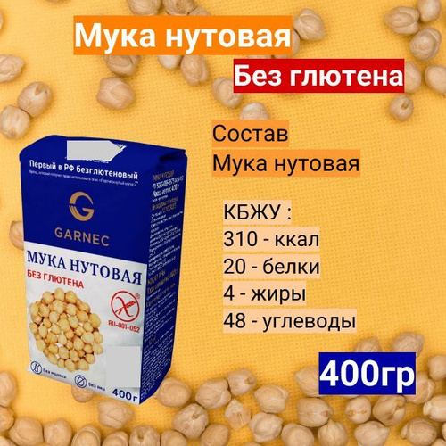 Мука нутовая БЕЗ ГЛЮТЕНА высокобелковая1 кг для выпечки омлетов