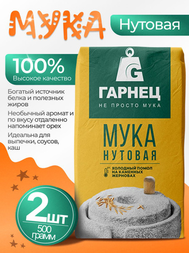 Мука нутовая холодного помола 2шт по 500гр Гарнец