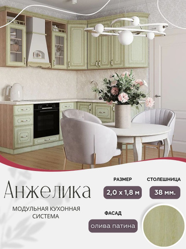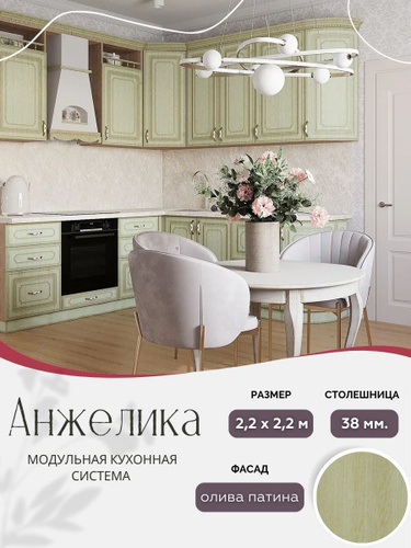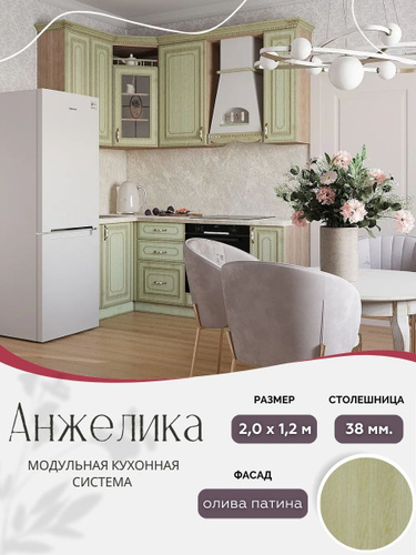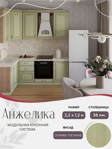 Угловой классический кухонный гарнитур Анжелика МДФ, 2,2х1,2 м Олива патина