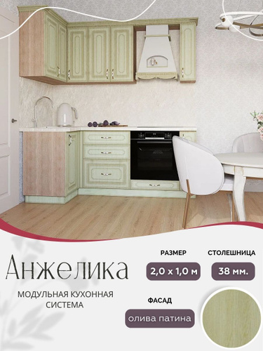 Угловой классический кухонный гарнитур Анжелика МДФ, 2,0х1,0 м Олива патина