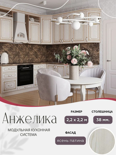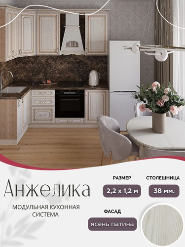 Угловой классический кухонный гарнитур Анжелика МДФ, 2,2х1,2 м Ясень патина