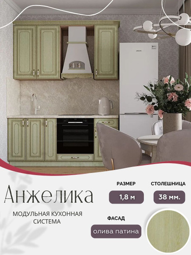 Классический прямой кухонный гарнитур Анжелика МДФ, 1,8 м Олива патина