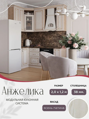 Угловой классический кухонный гарнитур Анжелика МДФ, 2,0х1,2 м Ясень патина