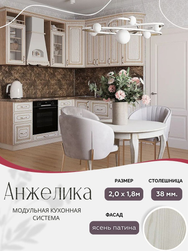 Угловой классический кухонный гарнитур Анжелика МДФ, 2,0х1,0 м Ясень патина