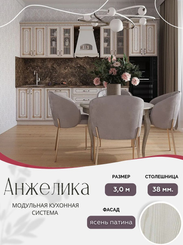 Классический прямой кухонный гарнитур Анжелика МДФ, 3,0 м Ясень патина