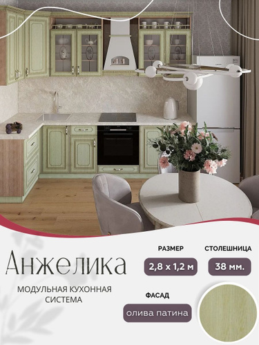 Угловой классический кухонный гарнитур Анжелика МДФ, 2,8х1,2 м Олива патина