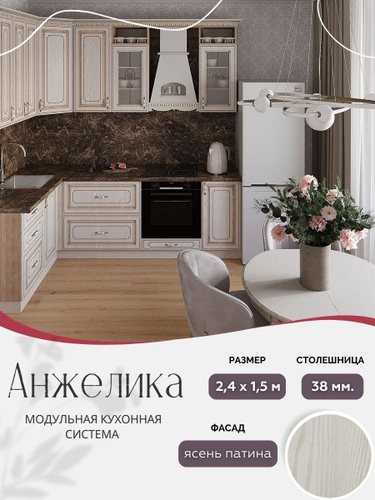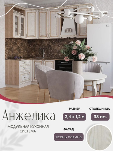 Угловой классический кухонный гарнитур Анжелика МДФ, 2,4х1,2 м Ясень патина