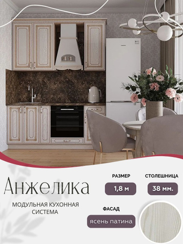 Классический прямой кухонный гарнитур Анжелика МДФ, 1,8 м Ясень патина