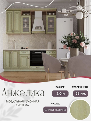 Классический прямой кухонный гарнитур Анжелика МДФ, 2,0 м Олива патина