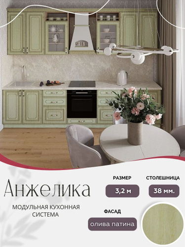 Классический прямой кухонный гарнитур Анжелика МДФ, 3,2 м Олива патина