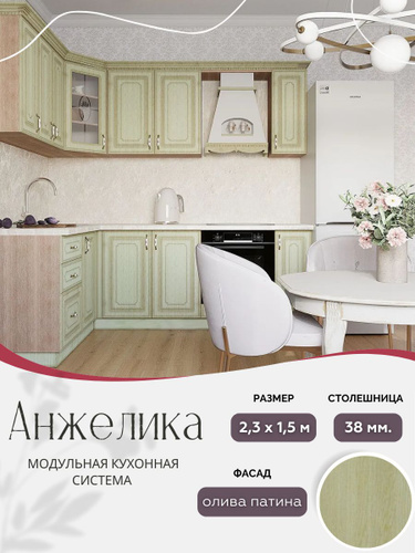 Угловой классический кухонный гарнитур Анжелика МДФ, 2,3х1,5 м Олива патина