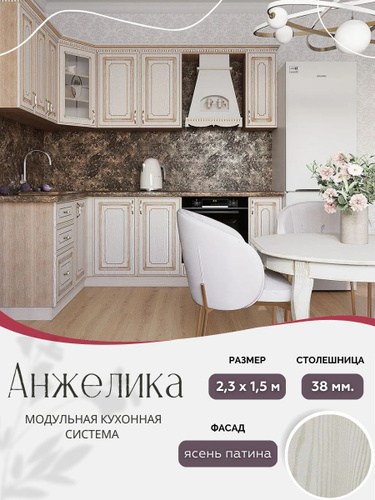 Угловой классический кухонный гарнитур Анжелика МДФ, 2,3х1,5 м Ясень патина
