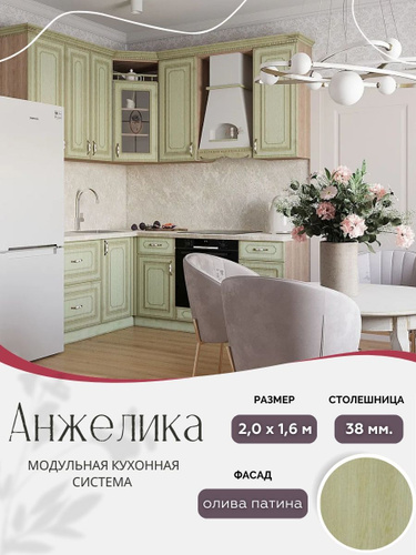 Угловой классический кухонный гарнитур Анжелика МДФ, 2,0х1,6 м Олива патина