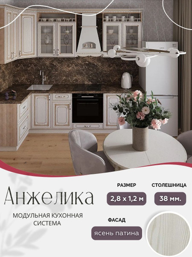 Угловой классический кухонный гарнитур Анжелика МДФ, 2,8х1,2 м Ясень патина