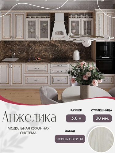 Классический кухонный гарнитур Анжелика МДФ, 3,6 м Ясень патина