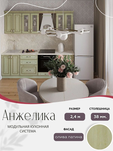 Классический прямой кухонный гарнитур Анжелика МДФ, 2,4 м Олива патина