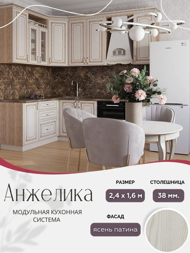 Угловой классический кухонный гарнитур Анжелика МДФ, 2,4х1,6 м Ясень патина