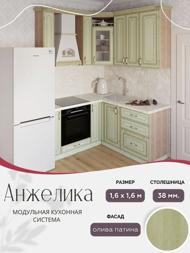 Угловой классический кухонный гарнитур Анжелика МДФ, 1,6х1,6 м Олива патина