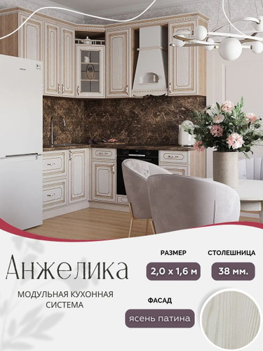 Угловой классический кухонный гарнитур Анжелика МДФ, 2,0х1,6 м Ясень патина