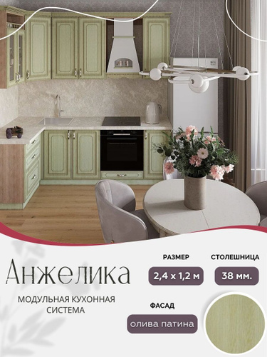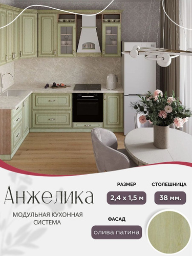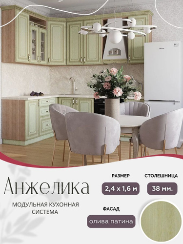 Угловой классический кухонный гарнитур Анжелика МДФ, 2,4х1,2 м Олива патина