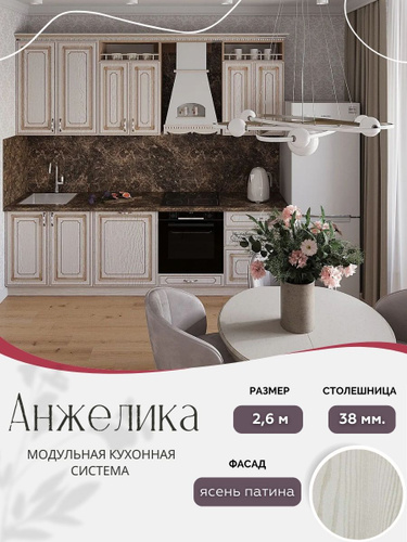 Классический прямой кухонный гарнитур Анжелика МДФ, 2,6 м Ясень патина