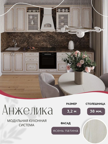 Классический прямой кухонный гарнитур Анжелика МДФ, 3,2 м Ясень патина