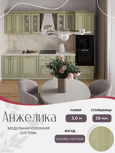 Классический прямой кухонный гарнитур Анжелика МДФ, 3,0 м Олива патина