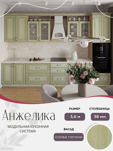 Классический прямой кухонный гарнитур Анжелика МДФ, 3,6 м Олива патина