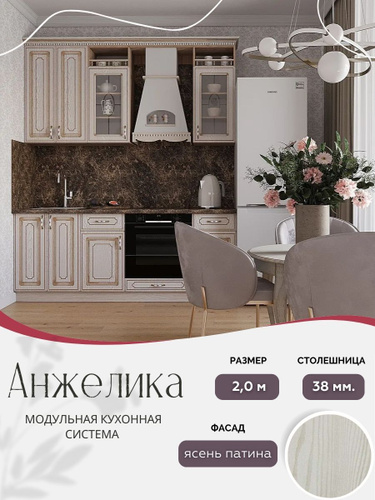 Классический прямой кухонный гарнитур Анжелика МДФ, 2,0 м Ясень патина