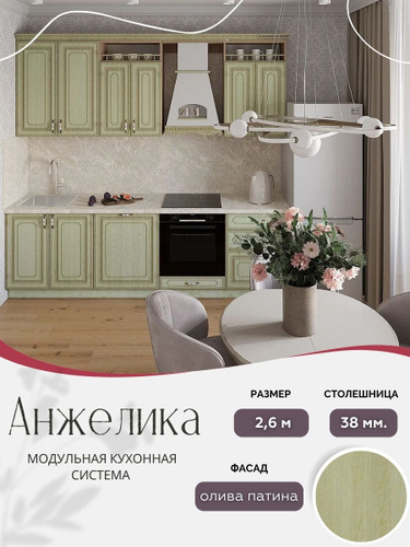 Классический прямой кухонный гарнитур Анжелика МДФ, 2,6 м Олива патина