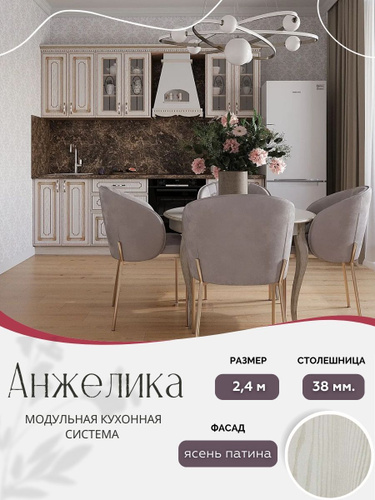 Классический прямой кухонный гарнитур Анжелика МДФ,2,4 м Ясень патина