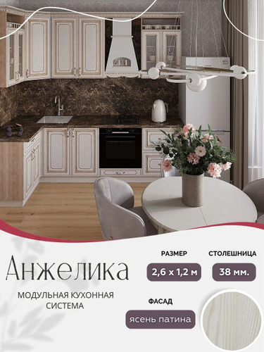 Угловой классический кухонный гарнитур Анжелика МДФ, 2,6х1,2м Ясень патина